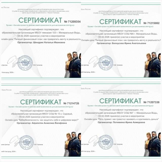 Учащиеся школ Минераловодского муниципального округа ежедневно принимают активное участие в просмотре онлайн уроков по финансовой грамотности, организованные банком России.