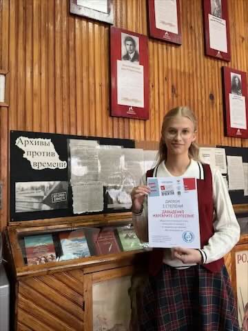 стала победителем регионального этапа Всероссийского конкурса исследовательских проектов «Без срока давности».